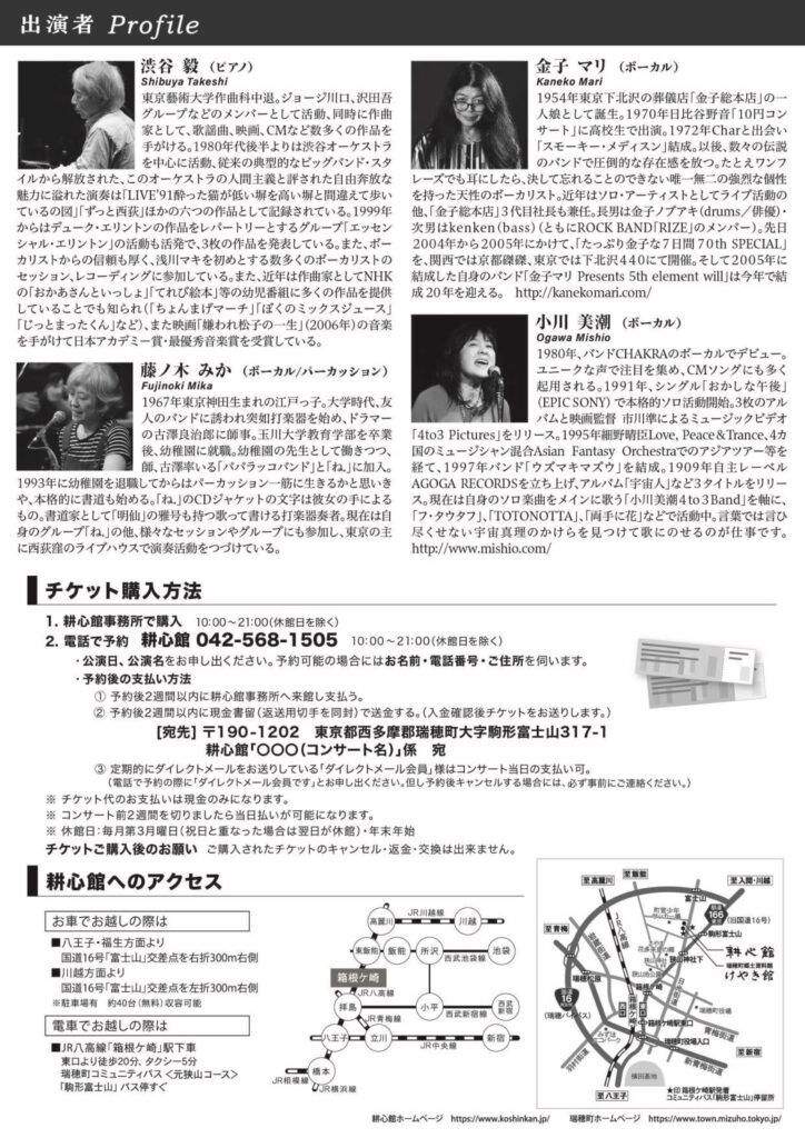 耕心館での展示会開催期間内に催される、特別企画コンサートのご案内です。